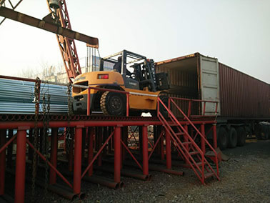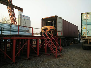 因市場需求,有好多需要裝集裝箱發(fā)貨的車輛,裝車過程非常緩慢,存在各種問題,唐山京華針對次問題進行研究,技術人員進行自制集裝箱裝車平臺,集裝箱裝車平臺是與叉車配合使用的貨物裝車專用輔助設備。有了它,叉車能直接從地面駛?cè)肫囓噹麅?nèi)部進行批量裝車作業(yè),可實現(xiàn)貨物的安全快速裝車。集裝箱裝車平臺的使用減少大量勞力,成倍提高裝車作業(yè)效率,有效縮短了客戶裝車等待時間。(生產(chǎn)部  吳曉紅)